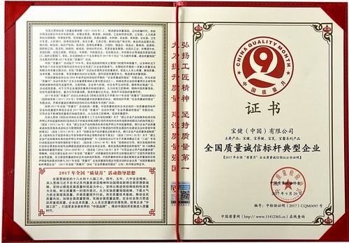 宝健连续三年获“全国质量诚信标杆典型企业”