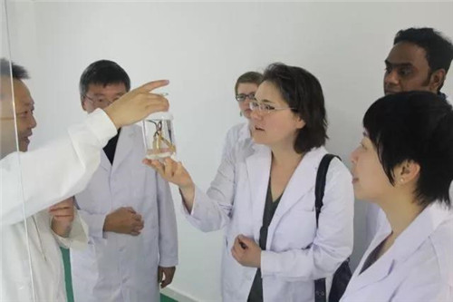 在安发虫草研究室,科研代表团对虫草的发酵研究充满兴趣