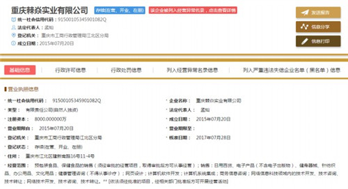 重庆棘焱实业涉水直销 注册资金达8000万元