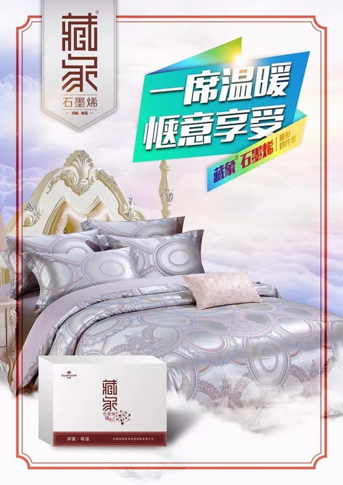 藏象®石墨烯臻彩四件套:A版采用舒适柔软光亮的臻彩丝提花面料;B版采用号称21世纪“黑金”材料的的石墨烯;周边采用花边点缀,为套件增加美感;整体设计低调奢华、时尚大方、独具韵味,营造一种健康、温馨、舒适的睡眠环境。