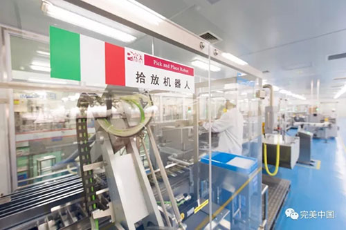 走进扬州完美保健食品生产车间,透过玻璃墙可以看到,10万级清洁度的全封闭车间里,配料、分装、计量……每一环节都由机械臂、传送带等“智能机器人”完成。短短一分钟,百余罐产品就顺利下线。在1000多平方米的配料车间,仅需一名员工操作一台主控电脑,就可完成所有生产程序。