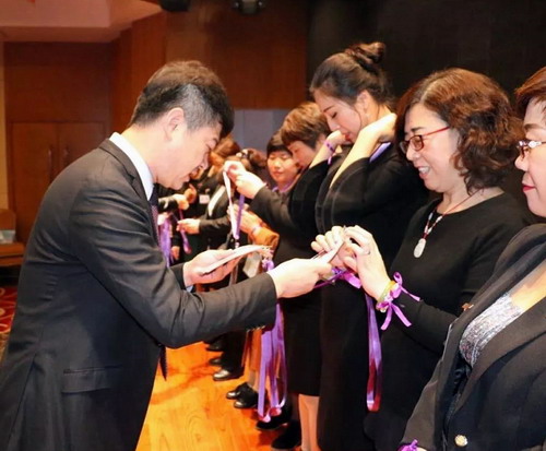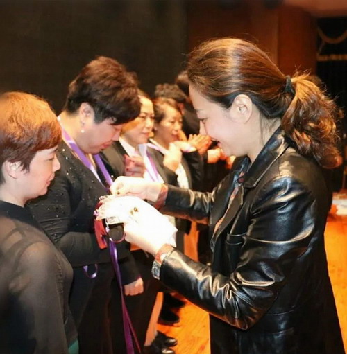 三八妇乐集团副总经理郭萌为学员颁发“直销员”证