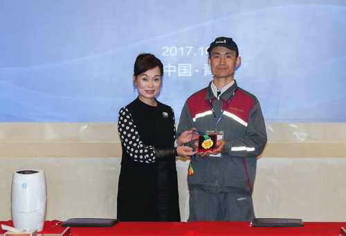 安利大中华区储运总经理黄桂琴女士为日日顺健康优秀服务工程师颁奖