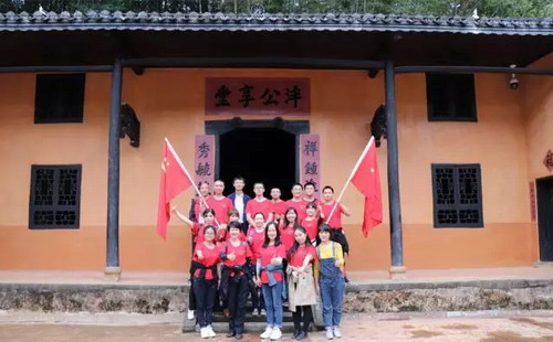 绿之韵党团成员在胡耀邦同志故居前留影纪念