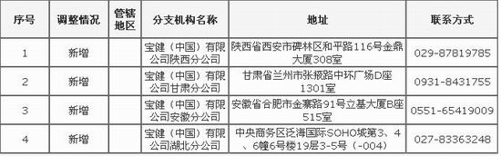 10月19日,商务部直销行业管理信息系统发布宝健(中国)有限公司新增分支机构信息,宝健此次调整新增陕西、甘肃、安徽、湖北4个分公司。详情如下: