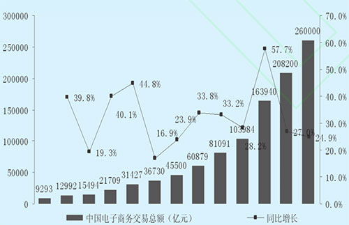 2016-年我国电商交易额超过26万亿元,增长24.9%