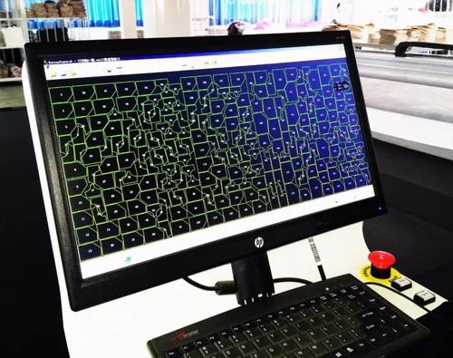 铺好的布就要送到自动裁床上了,它特有的针孔式裁剪方式,能够按照CAD服装打版设计出的最佳裁剪方案,最快速度地裁剪衣服,而且尺寸超级准确!