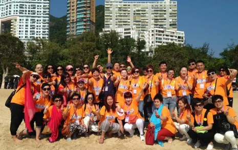如果你今天恰巧也在香港维多利亚港游玩,那么一定会看到一片橙色的海岸线,他们自成一列,整齐划一,等待着公司为精英们包下的游船,尽情徜徉在这一片湛蓝中(有没有发现佩戴能量围巾的小伙伴更亮眼呢~)。