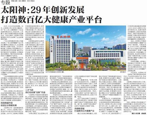 10月27日,南方日报发表题为《太阳神:29年创新发展 打造数百亿大健康产业平台》的文章,对太阳神29年的创新发展、网络党建工作成果和打造数百亿大健康产业的行动规划进行了深入报道。