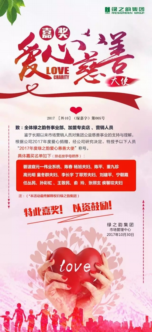 2017年度绿之韵集团爱心慈善大使名单出炉