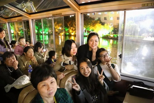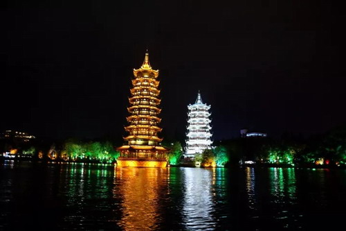 乘坐游船,荡漾湖中,棕榈欢歌、崖花水藻、丛发清绮,日月双塔等景致渐入眼帘,置身其中,倍感清新幽雅、舒适恬静,无处不体现“天人合一”的完美境界。