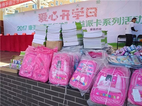 10月17日,康美药业通辽市科左后旗“青禾行动”捐赠仪式暨精准扶贫日活动在内蒙古通辽市科左后旗甘旗卡镇第三小学举行。在该仪式上,康美药业为甘旗卡镇、海鲁吐镇、吉日嘎朗镇、常胜镇的202个建档立卡贫困学生发放了公益保险卡和书包、图书等学习用品,捐赠物资价值约10000元。