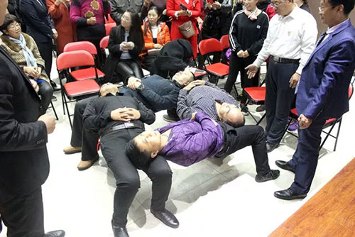 参观过后,权健河北分公司刘少飞老师带领大家做了多人配合互动游戏,考验大家的腰部力量。