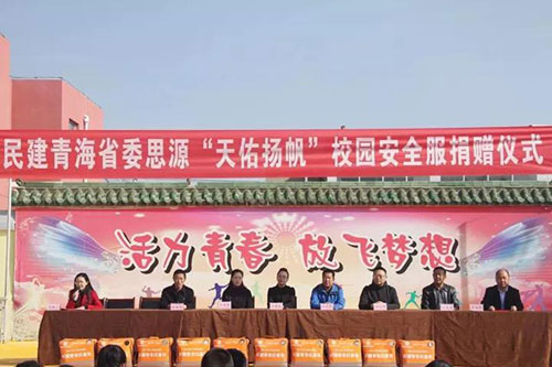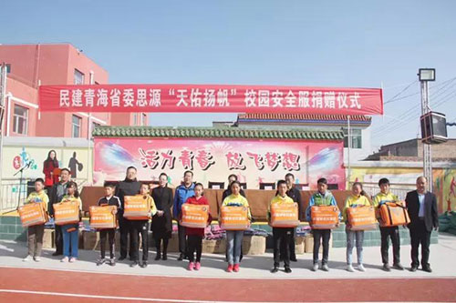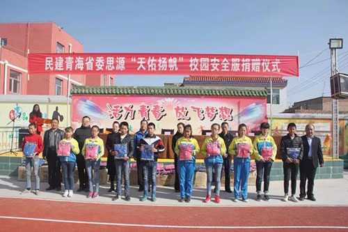 完美(中国)有限公司青海分公司总经理杨永顺进行了校园安全急救包及校园安全校服的捐赠仪式。他讲解了校园安全的基本知识并希望各位同学增强自我保护意识,积极锻炼身体,树立远大的理想,早日成为国家的栋梁。