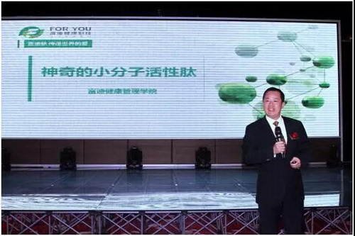 吴文广先生就国家实施健康产业趋势,讲解了富迪在新时代下跟随国家战略发展方向新指引,他说道:“当下国家重视大健康产业,而我们未来也将大部分重心倾向于这快,抵制以药养医,将预防落到实处。打造以富迪肽起步的发展模式。小分子活性肽,让我们收获的不仅是改变生命的机会,更是实现梦想的机会。因为,行业、平台、老板、产品、系统都已打造好。”针对未来发展模式,他解析着,当前富迪占据销售、招募和培训三大基石优势,优质爆品+人性化高效益的互利机制,是收获一众消费者的制胜法宝,也是抵抗竞争对手的最利方式。
