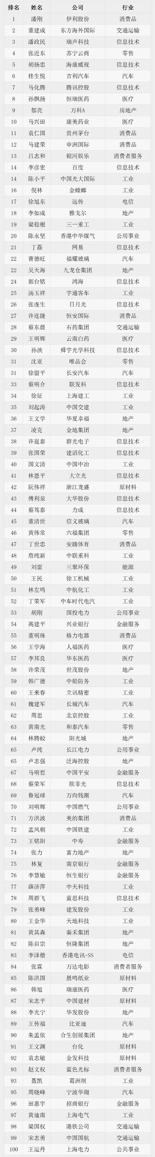 康美马兴田蝉联中国百佳CEO 位居第十名