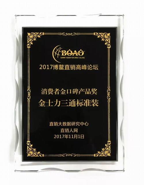 2017年11月1日,以“变与不变”为主题的第四届博鳌直销高峰论坛在海南文昌盛大召开。本届论坛由直销大数据研究中心主办,直销人网承办,CCTV发现之旅全程支持,会议特邀高校学者、行业专家、企业高管、行业精英和各大媒体共同探讨直销行业如何创新,如何坚守,探索在新业态下的发展趋势。会上,金士力三通标准装荣膺2017博鳌直销高峰论坛“消费者金口碑产品奖”。