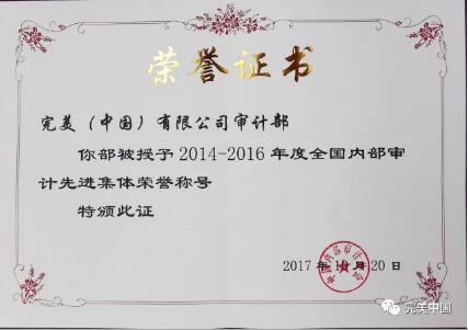 此次获奖是中国内部审计协会对完美公司审计工作的认可,也是对完美人的鼓励。完美公司监察中心表示,将大力学习宣传、贯彻落实十九大精神,坚持质量第一、效益优先,促进内部审计事业发展,为企业的健康可持续发展保驾护航!