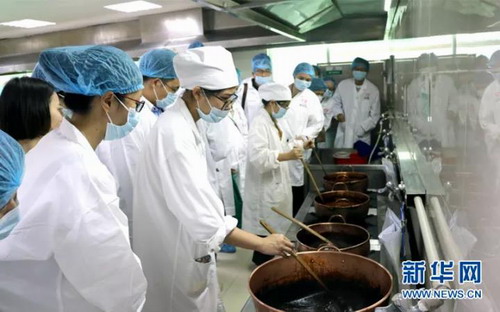 康美智慧药房工作人员向联盟单位的专家们展示膏方工艺。
