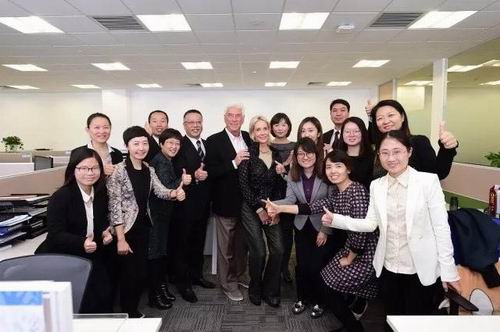 最后,华斯博士一行来到了员工工作区,华斯博士及夫人亲切地与大家打招呼,并与员工合影留念。