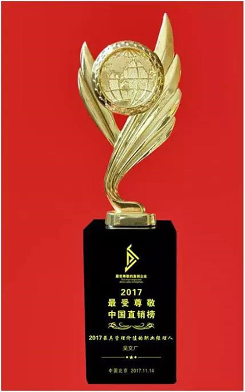 在此届“年度评选颁奖盛典”上,凭借专业、厚实、诚心、创新、慈善的精神品质,精准的前瞻方向,专业的领导决策能力,平易近人、待人实诚的人格魅力,陈怀德先生获得了2017最受尊敬的直销企业家。