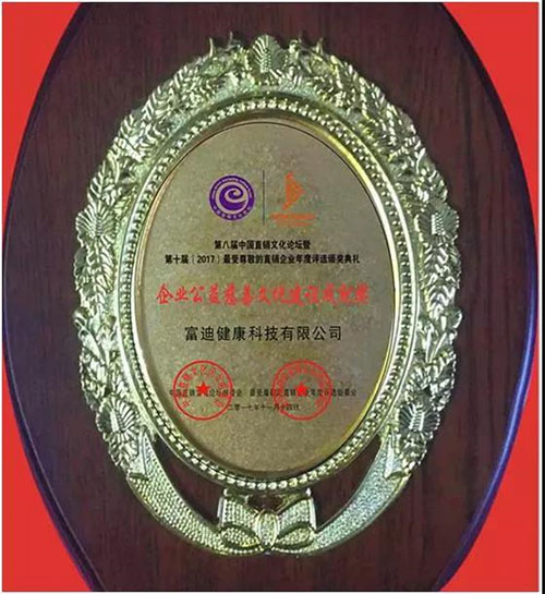 2017年,富迪全新打造战略模式,以直销加健康管理为引擎,以产业加资本为平台,强化大健康产业,在报单平台和售后服务也进行了全新升级。在后期服务、产品研发以及营销策略等问题上进行了针对性地调整和改善。凭借优质的多款爆品、高效率的精致服务构建城市群管理架构、实时顾客线下体验、组织社群活动、坚定且训练有素的精英骨干、人性化高效益循序渐进的互利机制,敢于向未知发出挑战,富迪荣膺年度直销大奖-全球直销商业模式。