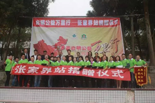 启明公益万里行走进湖南省张家界天门山镇中心学校,在这里举行了“中国航天启明图书室”落成暨捐书助学活动,为该校捐赠了1500余册价值5万元的图书。
