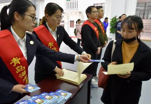 11月17日下午,由海之圣员工组成的活动小组来到青岛科技大学校园,现场为学子们发放活动宣传品,并向大家宣导打击传销活动的重要意义。