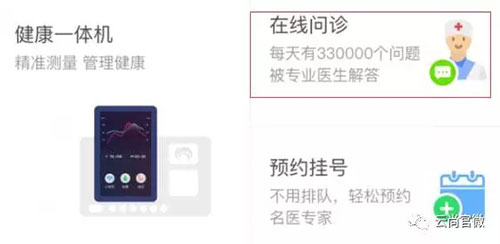 “云尚大健康”依托电子商务平台,以智能化、数字化管理为核心,为用户提供健康产业链上的各环节服务,包括在线问诊、预约挂号、健康检测、健康管理、养生、健康商城等服务,打造一个共享的大健康医疗生态圈。