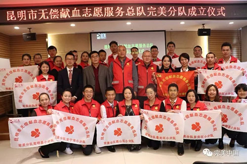 完美昆明市无偿献血完美志愿者分队成立啦!