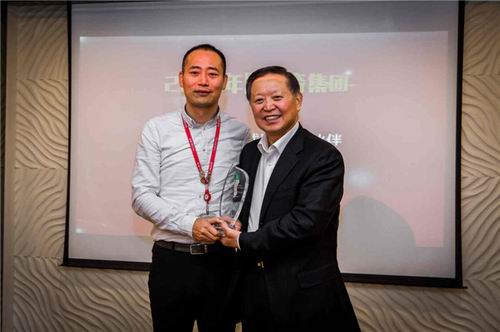 徐董向黄星总经理颁发“2017年隆力奇集团最佳战略合作伙伴”奖杯