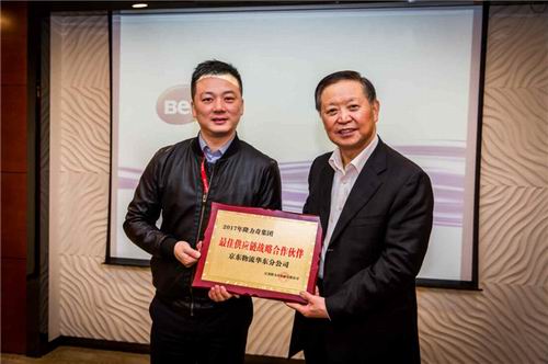 徐董向杨涛总颁发“2017年隆力奇集团最佳供应链战略合作伙伴”牌匾