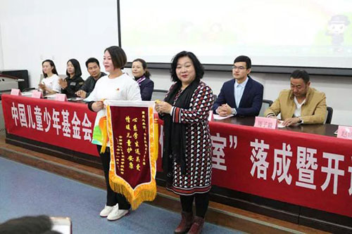 学校为爱心单位以及领导赠送感谢锦旗与手绘画作表示感谢。
