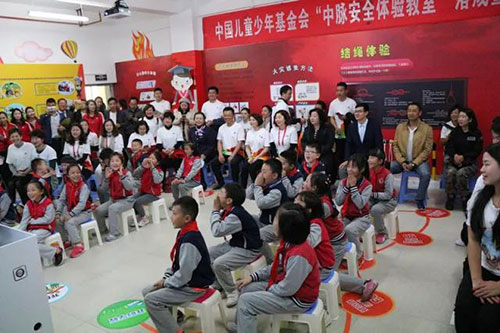 与会领导嘉宾与中脉志愿者和学校孩子们一同在“安全体验教室”中上了一节生动的安全教育课,在实践中学习安全知识。“火有哪些危害?”“冒浓烟使人窒息。”在安全体验教室里,志愿者老师通过PPT视频演示的方式,让学生在互动中学习到安全知识。据中脉志愿者赵婧雯和陈建金介绍,安全体验教室除了硬件建设,也会开设专门的安全体验课程,教导学生掌握避险、逃生、自救、互救等实用应急技能训练。项目还将会为学校培训安全教育教师,以更好地帮助学校开展日常安全教育。