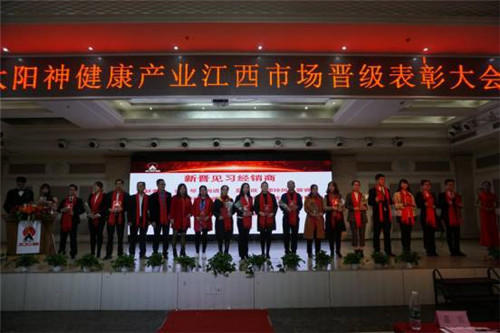 11月18日,江西市场晋级表彰大会在南昌市美程商务酒店举办。太阳神健康产业市场中心总监助理陈国斌先生、江西分公司负责人祝词元先生、湖南分公司负责人黄锐先生、全国市场督导杨瑞平先生及众多市场领导人和经销商伙伴出席。会议对2017年度表现优异的经销商伙伴进行了隆重表彰。