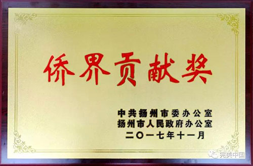 完美日用品有限公司荣膺扬州市“侨界贡献奖”