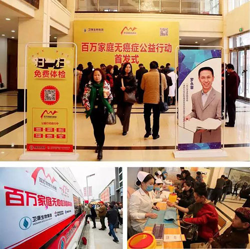卫康集团早在2015年12月就与清华大学抗肿瘤蛋白质药物国家工程实验室签署战略合作协议,联合开展“百万家庭无癌症”公益行动,向中国百万家庭提供癌症前期筛查检测服务。采取清华大学抗肿瘤蛋白质药物国家工程实验室发现的肿瘤标志物热休克蛋白90α定量检测技术,分析人体癌变细胞,向中国百万家庭提供癌症前期筛查、数据分析服务。目前,已让20余万人受益。