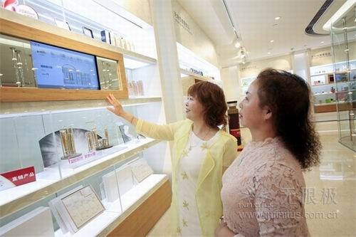 产品陈列区的互动显示屏里,动动手指就能了解公司产品。如果心动了,还可以在显示屏里下单购买哦。