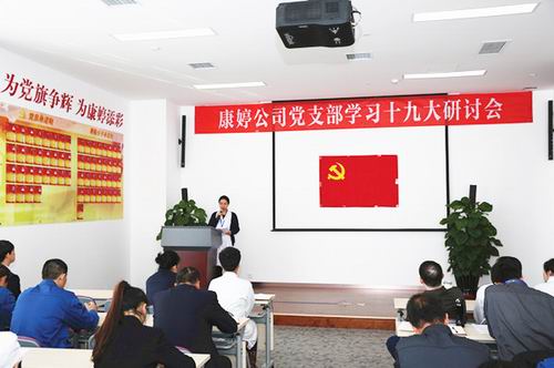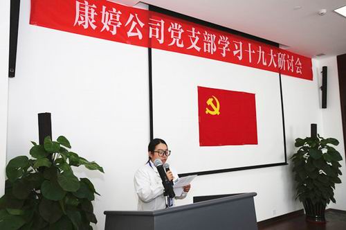 随后,大会进行了学习贯彻十九大精神专题研讨会,并由2位党员代表分享了学习十九大的心得体会。康婷公司党支部书记杨震作了总结讲话:“习近平总书记在党的十九大报告中强调指出,要坚持问题导向,保持战略定力,推动全面从严治党向纵深发展,全面从严治党永远在路上。康婷公司沐浴着十八大的春风,于2015年6月成立了党支部,两年多以来党支部取得了一定的成绩,发展了第一批预备党员,在党支部今后的工作中,将加强对党员的教育,强化政治理论学习,不断提高政治素养,在思想上牢记党赋予的权利和责任,努力发挥党员的带头模范作用,夯实根基,推动党建工作再上新台阶。”