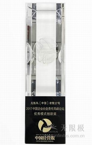 11月21日,在由《中国经营报》主办的2017(第十五届)中国企业竞争力年会和中国企业社会责任高峰论坛上,“无限极快乐足球”公益项目荣获“优秀模式创新奖”和“产品健康典范奖”两项大奖。