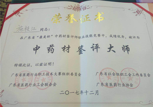 康美药业选派质量管理部施枝江等4名选手代表参赛,经过与省内食药检验机构、医疗机构、中医诊所、大专院校等单位优秀选手的激烈角逐和紧张的同台竞技,施枝江等4名选手最终均获得了优异成绩,其中:施枝江获得决赛第一名,并获评省医药行业职工技术大赛组织委员会颁发的“中药材鉴评大师”,杨绵辉、陈金佩获评“中药材鉴评师”,姚艺新获评“中药材鉴评员”。此次竞赛充分展示了康美药业基层中医药工作者的良好风采。