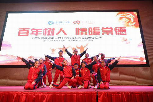 百年树人公益晚宴仪式的尾声,是由桃源县小学生表演的《炎帝之光》,这支炎帝家人们耳熟能详的司歌,在这群天真烂漫的小朋友可爱灵动的演绎下,更显百年树人大爱传承的非凡意义。