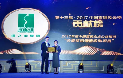 大会同期还举行了盛大的年度评选颁奖典礼,贡献榜、价值榜、潜力榜、新锐榜、产品榜、风云榜、导师榜、菁英榜等多个奖项集中颁发,充分展现出了2017年以来直销行业的巨大发展和丰硕成果。颁奖盛典上,绿之韵集团揽获“2017年度中国直销杰出公益模范——关爱贫困母亲救助项目”“ 年度明星产品——韵宜生维利清胶囊”殊荣。