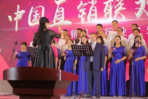 由海畴集团董事总裁胡远江教授和本届直销春晚艺术顾问吕秀玲领唱,海畴传媒总经理刘兆静指挥,姚则兵、易园翔、彭铭、张阳辉、罗永亮、张鸣先、劳嘉、袁永红等近40名行业大咖组成的行业精英合唱团为大家带来了《歌唱祖国》《朋友》!