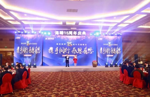9日晚上,在九华山庄的一层大宴会厅,举办了海畴集团十五周年庆典暨客户答谢晚宴。
