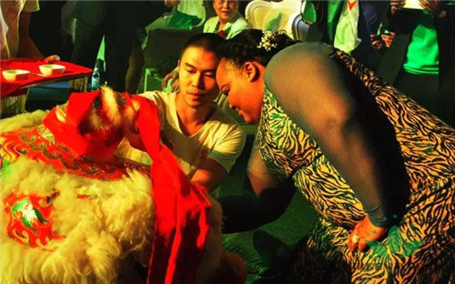 南非总统夫人Nompumeleo Ntuli Zuma为舞狮点睛