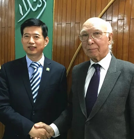 图:天狮集团阎玉朋先生与巴基斯坦发改委计划委员会副主席Sartaz Aziz先生