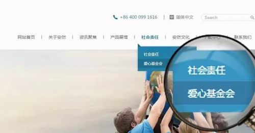 安然爱心基金会是新官网增加的慈善板块,里面包括基金首页、基金会介绍、公益资讯、社会荣誉、安然志愿者等,图文并茂展现安然投身社会公益的品牌魅力。