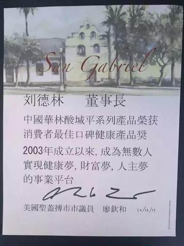 刘德林董事长亲赴现场并做精彩致辞。美国盛盖博市长廖钦和,三任蒙特利公园市长、现任洛县地产估价上诉委员及劳工部部长刘达强,加州中医针灸联合会创始会长辛长山,美国华人联合总会会长李社潮等莅临会场。华林集团副董事长刘杰林,华林酸碱平美国有限公司总裁王亚玲,华林酸碱平市场副总刘庆,美国有限公司营销总裁李丹,优秀市场领导人孙龙飞、徐志平及候梅香、赵海利等与广大经销商共襄盛典。嘉宾云集,高朋满座,大家为着一个共同的梦想而聚首,共同谱写酸碱平国际化事业新篇章。