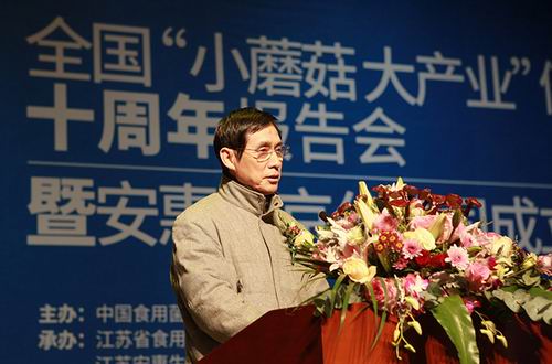 中国食用菌协会会长顾国新在致辞中说,中国的食用菌产业快速发展,据最新统计,全国食用菌年产量规模已经突破3000万吨,总产值已经突破2000亿元,从业人员近3000万人,产量规模占全世界总产量的75%以上,发展成果显著。联合安惠公司一起举办的“小蘑菇 大产业”健康万里行活动已开展了十年,通过这个活动,食用菌被更多的人认识和接受,也成为精准扶贫的重点项目。他希望安惠公司一如既往地在活动中起到积极带动作用,带领更多食用菌行业的企业,带领更多食用菌产业的热心人员,为这个行业的发展,为百姓健康,为中国梦做出更大的贡献。